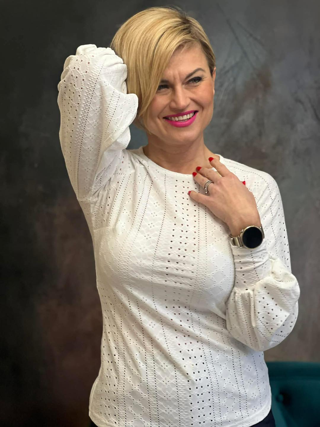 A kerek nyakkivágás időtálló és sokoldalúan kombinálható, így a felső tökéletesen illik szoknyához, elegáns nadrághoz vagy akár farmerhez is. Viselheted irodába, találkozóra vagy egy lazább alkalomra is, amikor szeretnél csinosan, mégis kényelmesen öltözni.