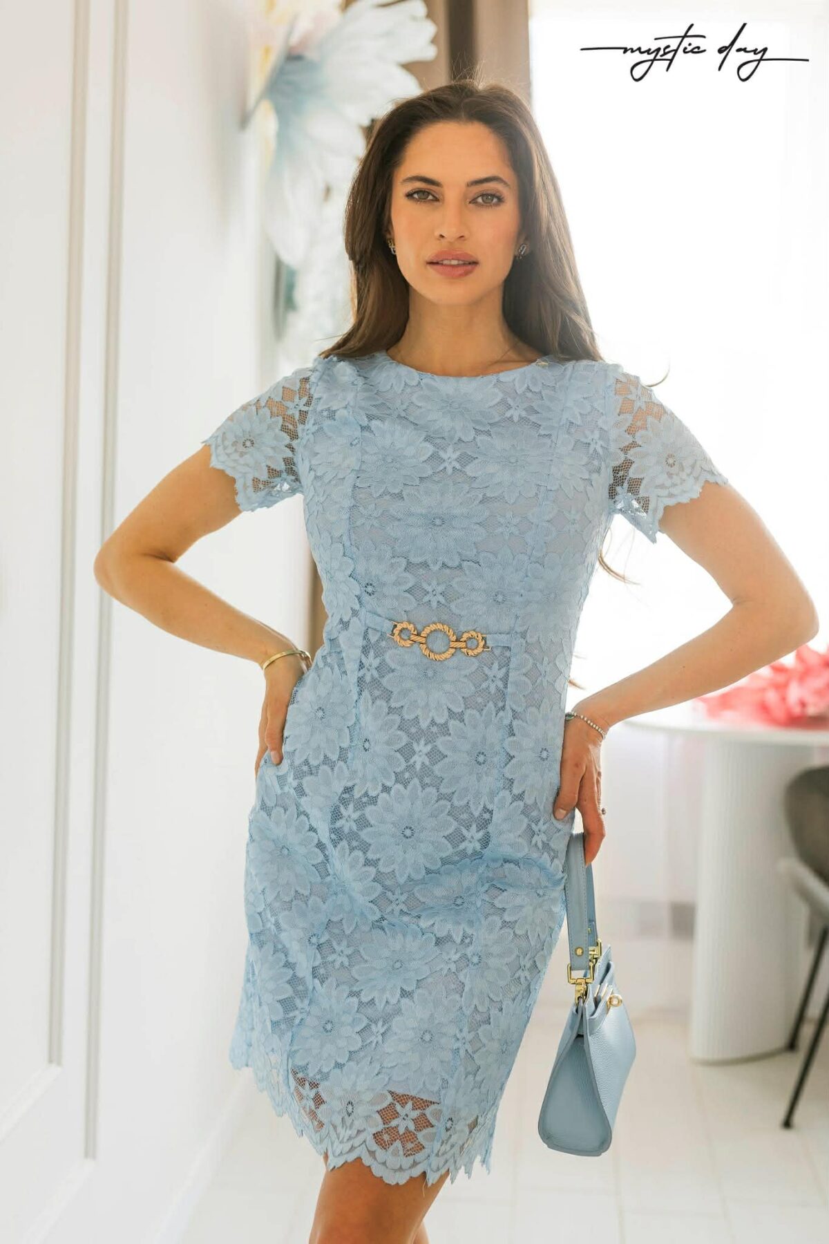 Ha egy olyan ruhát keresel, ami egyszerre elegáns, nőies és igazán különleges, ezzel a full csipkés, térdig érő darabbal biztosan betalálsz. A csipke romantikája és a derékon elhelyezett fém díszítés kifinomult, modern csavart ad a megjelenésednek – tökéletes választás, amikor szeretnél magabiztosan ragyogni.