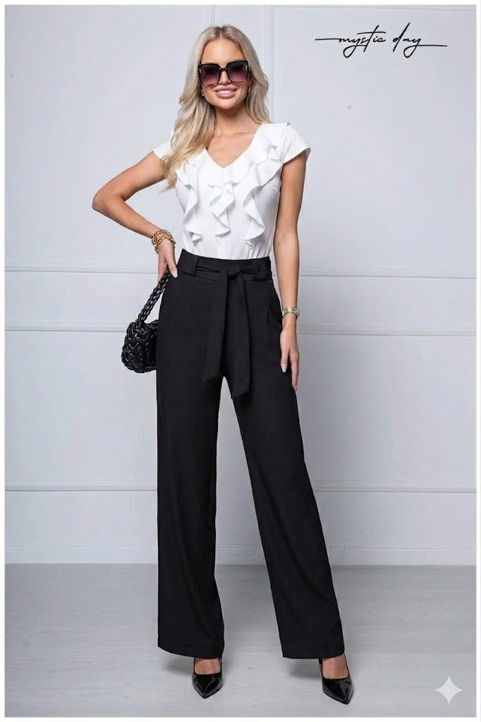 Viseld blúzzal, toppal vagy zakóval, és teremts magabiztos, elegáns megjelenést a Rimini fekete nadrággal!