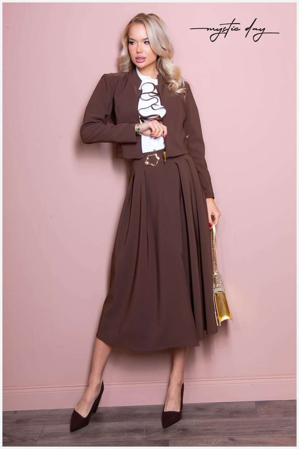 A Mystic Day – Samanta csokibarna kabát a modern eleganciát és a praktikumot ötvözi. Az arany cipzárak és a csokibarna szín, kifinomult megjelenést biztosítanak, miközben a szövet anyag elegáns hatást kelt. A hosszú ujjú, cipzáras kialakítás nemcsak stílusos, hanem kényelmes és praktikus viseletet is nyújt.