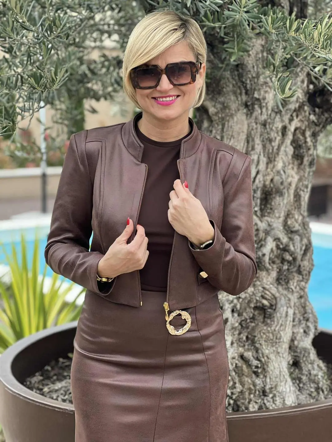 Válaszd a Samanta csokibarna bőr kabátot, és emeld ki stílusodat minden nap!