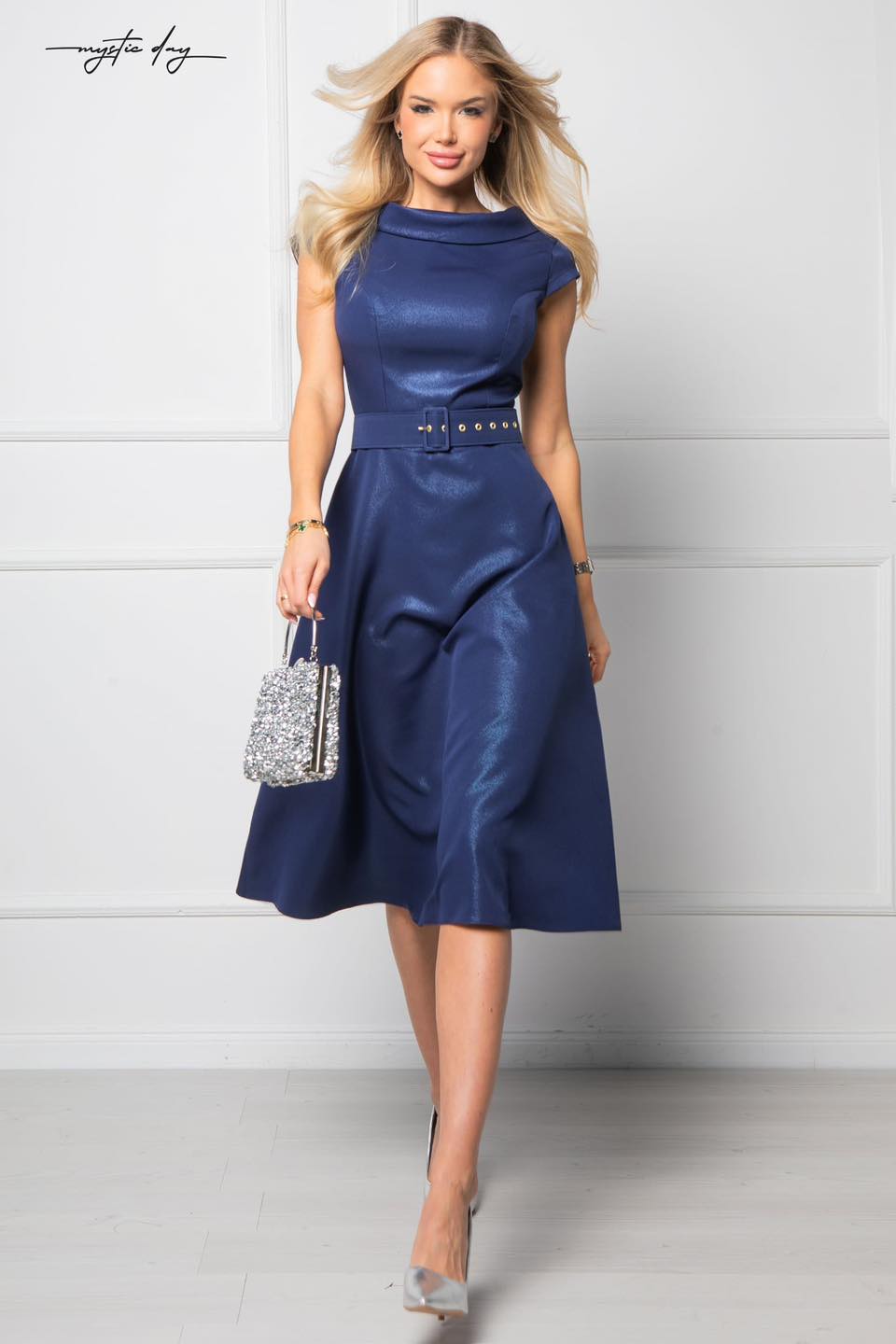 A Sára sötétkék csillogós ruha tökéletes választás, ha egy elegáns, mégis kényelmes ruhát keresel bármilyen alkalomra. Az anyagában csillogó dizájn kiemeli a ruha különlegességét, miközben a V kivágás a háton és a midi fazon klasszikus eleganciát ad. A praktikus zsebek és az öv, ami a ruha tartozéka, még inkább fokozzák a stílust és kényelmet.
