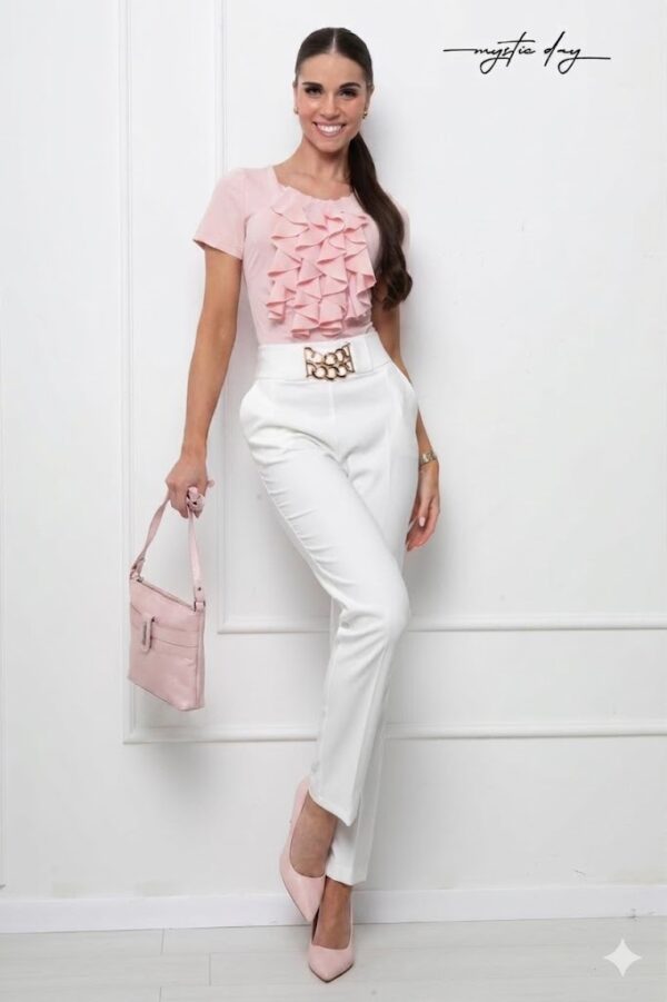 Ha olyan darabot keresel, ami egyszerre elegáns, nőies és praktikus a mindennapokra, ez a felső telitalálat. A romantikus zsabós mellrész finom játékosságot ad a megjelenésednek, miközben a hűs hatású viszkóz anyag kellemesen friss érzetet biztosít – különösen melegebb napokon. Viseld irodába egy szövetnadrággal, hétvégén farmerrel, vagy dobd fel egy szoknyával egy csinos vacsorához!