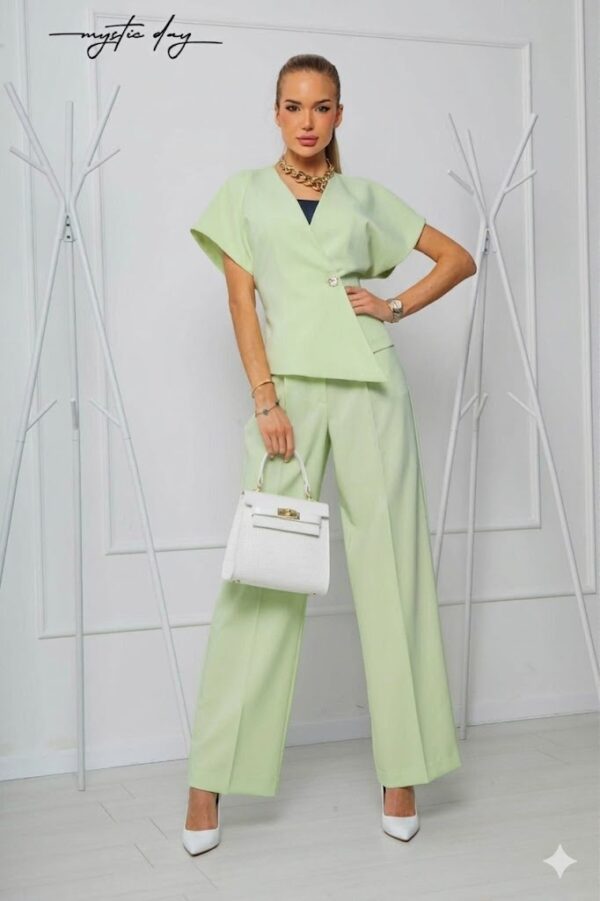 Ha olyan ruhát keresel, ami egyszerre kényelmes és kifinomult, ez a bő fazonú, élére vasalt hatású darab biztosan a kedvenced lesz. Könnyed eleganciája miatt remek választás irodába, hétköznapokra, városi sétákhoz, de egy csinos cipővel és kiegészítőkkel akár randira vagy alkalmi eseményre is gond nélkül felöltöztethető.