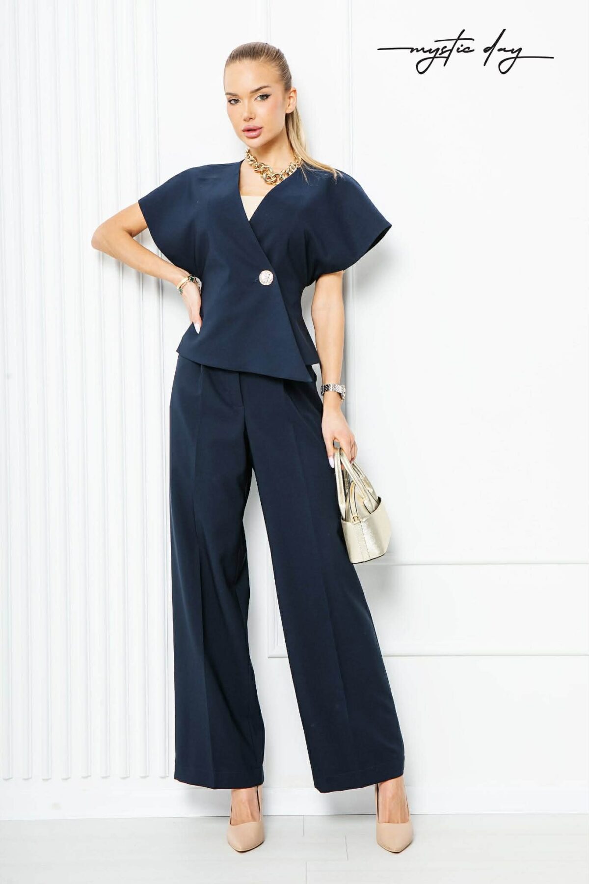 Ha olyan ruhát keresel, ami egyszerre kényelmes és kifinomult, ez a bő fazonú, élére vasalt hatású darab biztosan a kedvenced lesz. Könnyed eleganciája miatt remek választás irodába, hétköznapokra, városi sétákhoz, de egy csinos cipővel és kiegészítőkkel akár randira vagy alkalmi eseményre is gond nélkül felöltöztethető.