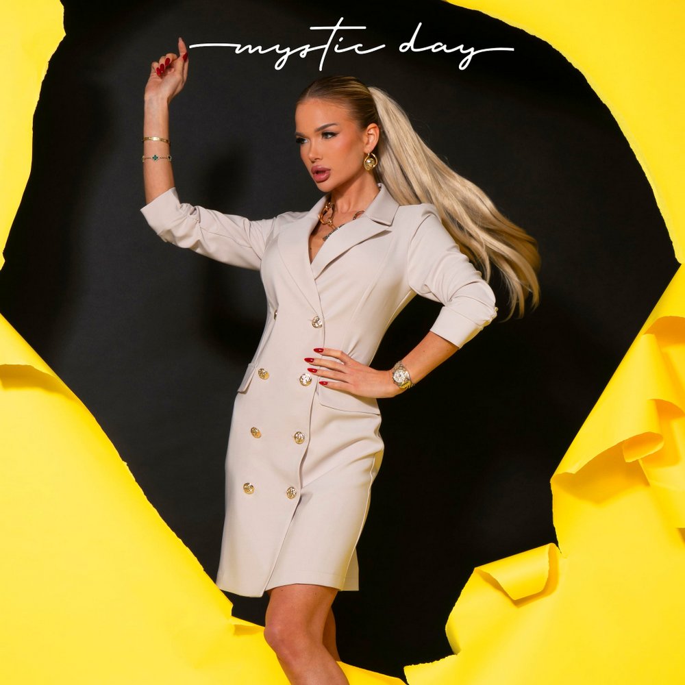 A Zella bézs zakóruha tökéletes választás, ha elegáns és kifinomult megjelenésre vágysz. A galléros, gombos fazon klasszikus, mégis modern hatást kelt, míg a háromnegyedes ujj kényelmes és praktikus viseletet biztosít.