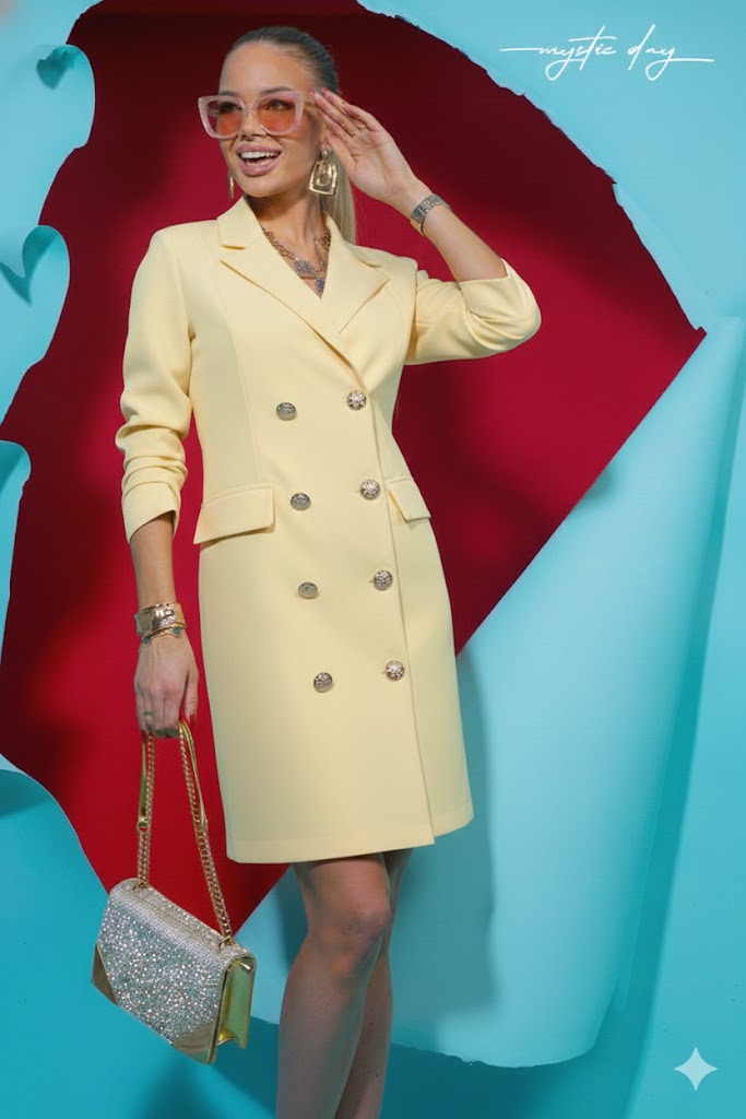 Ez a zakóruha tökéletes üzleti találkozókra, elegáns eseményekre vagy akár egy stílusos hétköznapi outfit részeként is megállja a helyét. Kombináld magassarkúval a letisztult eleganciáért, vagy viseld bokacsizmával egy trendi megjelenés érdekében!