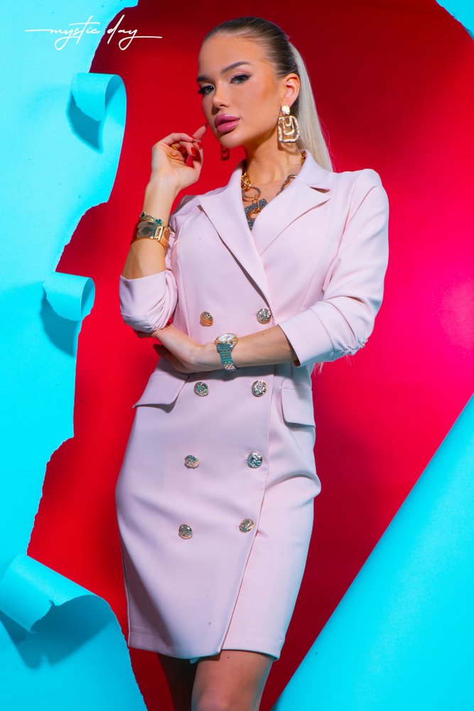 Értékelés írásaA Zella púderrózsaszín zakóruha tökéletes választás, ha elegáns és kifinomult megjelenésre vágysz. A galléros, gombos fazon klasszikus, mégis modern hatást kelt, míg a háromnegyedes ujj kényelmes és praktikus viseletet biztosít.
