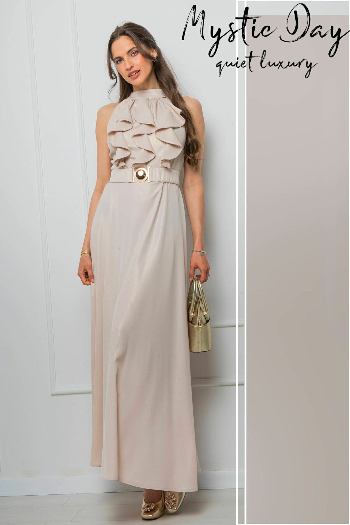 A Zsanett zsabós maxi ruha eleganciát és kifinomultságot sugároz. A zsabós részlet romantikus, nőies megjelenést kölcsönöz, míg a kerek nyakrész letisztult, klasszikus hatást ad. Az ujjatlan fazon könnyedséget biztosít, így ideális választás a melegebb évszakokban vagy rétegezve elegáns kabáttal, blézerrel hűvösebb alkalmakon.