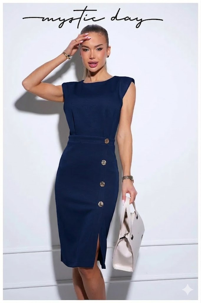 A Mystic Day Lilla ujjatlan ruha egy igazi modern klasszikus, amely a ceruza fazon eleganciáját markáns részletekkel egészíti ki. A derékban szabott kialakítás szépen hangsúlyozza az alakot, míg az elöl elhelyezett slicc nemcsak kényelmes mozgást biztosít, hanem nőies, dinamikus megjelenést is ad.