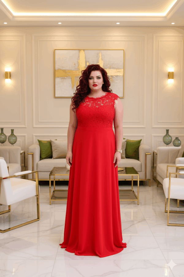 A nagyméretű piros muszlin maxi ruha tökéletes választás különleges alkalmakra, ha egyedi és kifinomult megjelenést keresel. A horgolt csipkével díszített, necc betétes mellrész romantikus és nőies hatást kelt, míg a gumis hátkialakítás és az elasztikus anyag biztosítja a kényelmes viseletet.