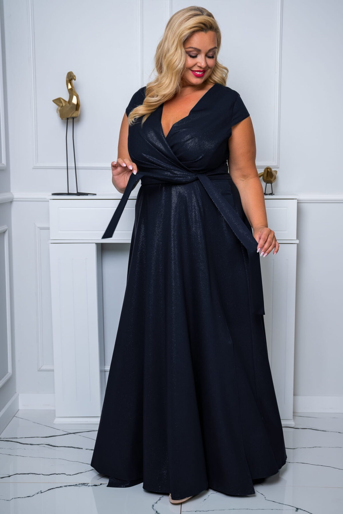 A Natalia fekete csillogós maxi ruha tökéletes választás, ha egyedi és lenyűgöző megjelenésre vágysz. Ez a ruha nemcsak elegáns, hanem kifejezetten a plus size méretek igényeihez igazították, hogy mindenki magabiztosan ragyoghasson benne.