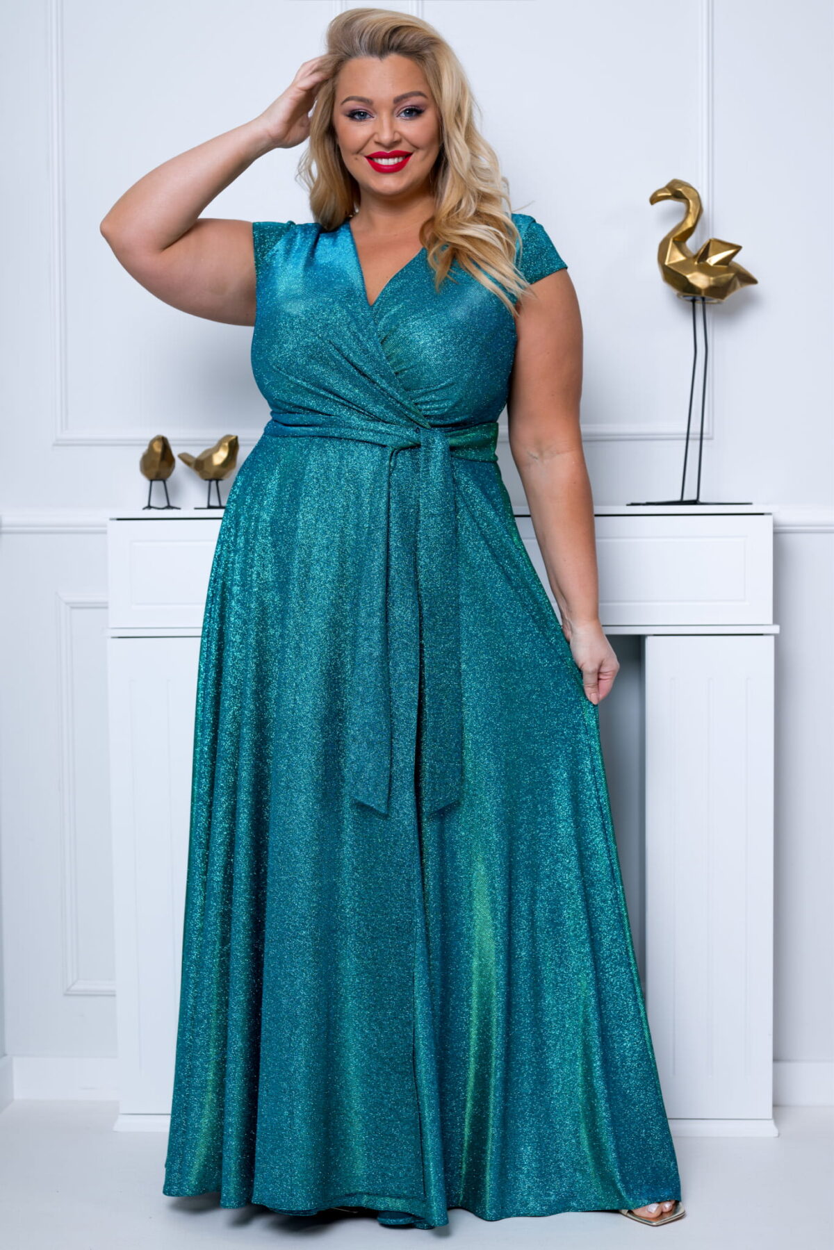 A Natalia smaragdzöld csillogós maxi ruha tökéletes választás, ha szeretnél ragyogni és magabiztosan tündökölni bármilyen különleges eseményen. Ez a lenyűgöző, plus size méretekre tervezett ruha az elegancia és a kényelem találkozása.