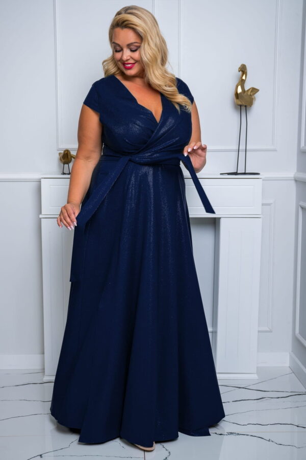 Tündökölj és érezd magad magabiztosan a Natalia sötétkék csillogós plus size maxi ruhában! Ez a nagyszerű darab minden részletében a nőiességet és az elegáns