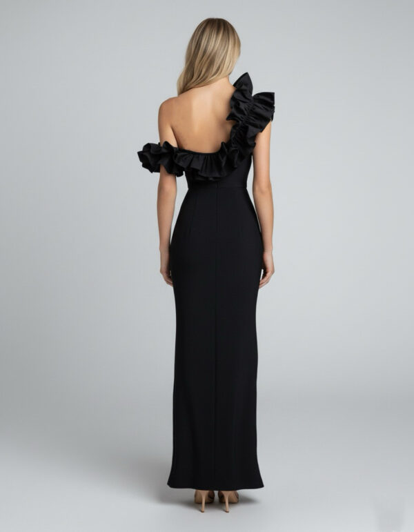 A félvállas, ejtett vállú kialakítás modern és trendi, szépen hangsúlyozza a vállakat és a nyakat. A fodros részletek romantikus, mégis feltűnő karaktert kölcsönöznek a ruhának. Ideális választás bálokra, esküvőkre, gálákra vagy bármilyen alkalomra, ahol szeretnél igazán emlékezetes és elegáns megjelenést.