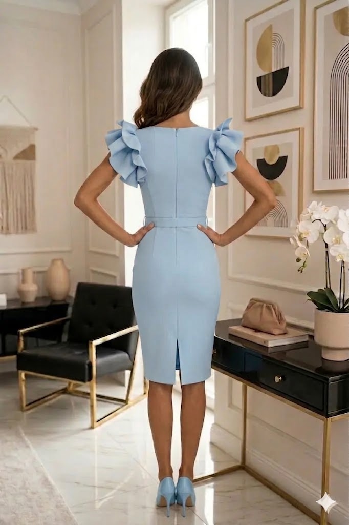 Ha olyan ruhát keresel, ami egyszerre modern, nőies és kényelmes, ez a neoprén anyagú darab telitalálat. A fodros vállrész finoman romantikus, a derékban szabott vonalvezetés pedig szépen kiemeli az alakot. Viseld magassarkúval egy elegáns eseményre, vagy egy letisztult blézerrel az irodába – mindig magabiztos, rendezett hatást kelt.