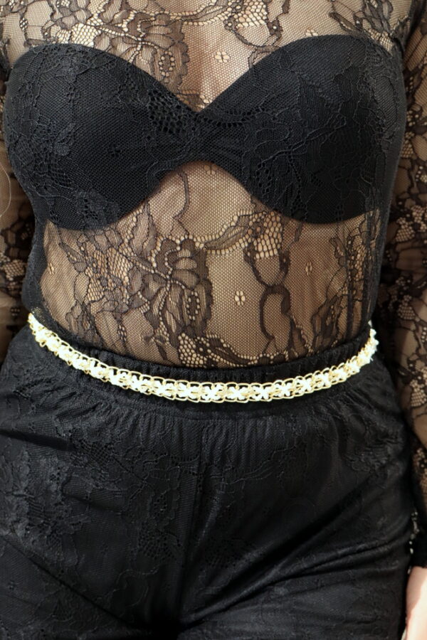 A Nova strasszos ékszer öv minden szettet azonnal elegánssá és látványossá varázsol. Láncos kialakítása és teljes egészében gyöngyökkel díszített fém anyaga exkluzív megjelenést biztosít – legyen szó alkalmi ruháról, tunikáról vagy akár egy letisztult hétköznapi összeállításról.