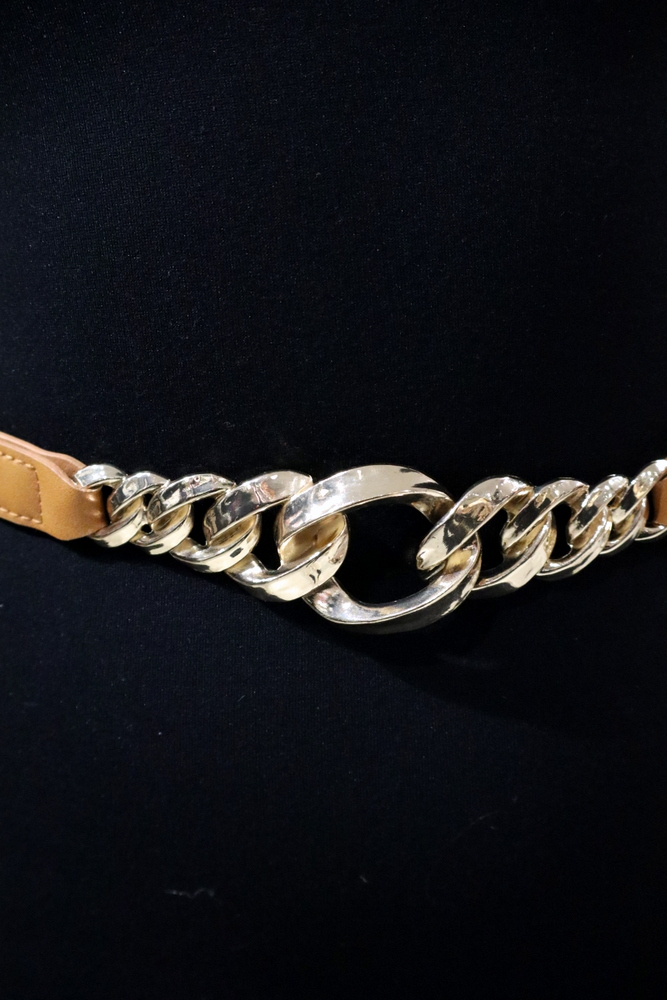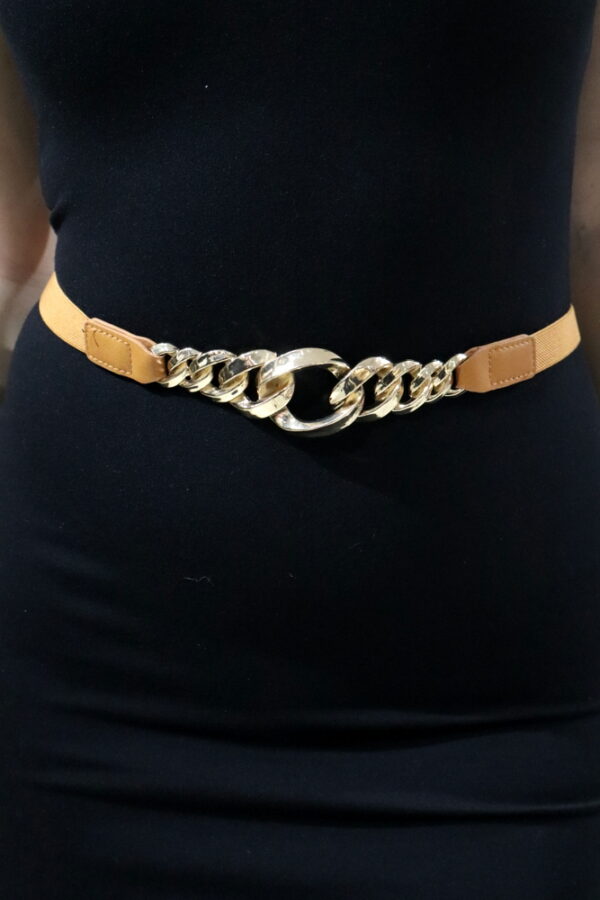 Az Olea arany lánc csatos gumis öv egy igazán különleges darab, amely kifinomult stílust csempész bármely öltözékbe. A keskeny, gumis kialakítás kényelmes viseletet biztosít, miközben lágyan formálja a derekat. A lánc mintás arany fém csat látványos részlet, amely azonnal magára vonzza a tekinteteket, és különösen elegánssá varázsolja a megjelenést.