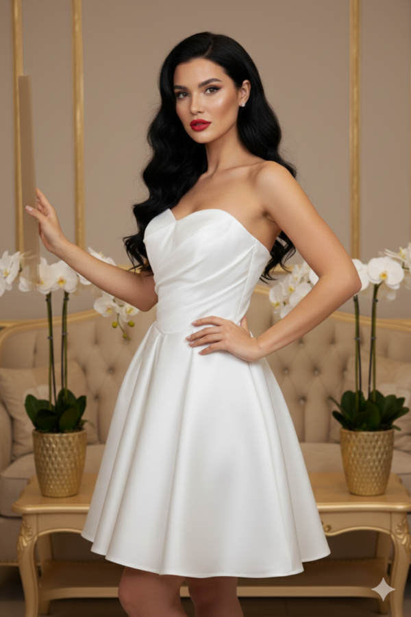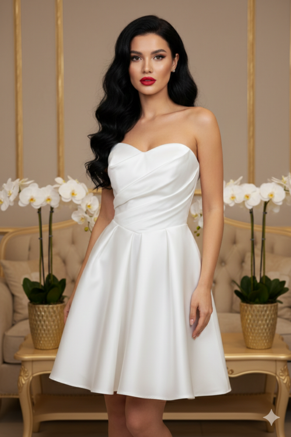 Az Oriella fényes pánt nélküli ruha tökéletes választás, ha igazán nőies és feltűnő darabot keresel alkalmakra. A pánt nélküli fazon szépen kiemeli a vállakat és a dekoltázst, míg a húzott mellrész gondoskodik a szép tartásról és az esztétikus vonalvezetésről. A fényes anyag elegáns csillogást ad a ruhának, amely különleges megjelenést biztosít.