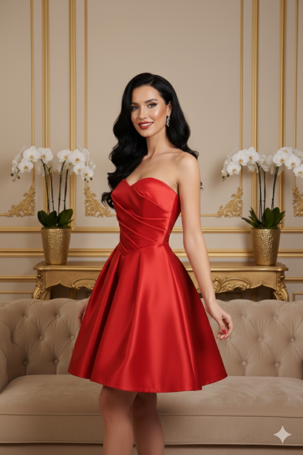 Az Oriella fényes pánt nélküli ruha tökéletes választás, ha igazán nőies és feltűnő darabot keresel alkalmakra. A pánt nélküli fazon szépen kiemeli a vállakat és a dekoltázst, míg a húzott mellrész gondoskodik a szép tartásról és az esztétikus vonalvezetésről. A fényes anyag elegáns csillogást ad a ruhának, amely különleges megjelenést biztosít.
