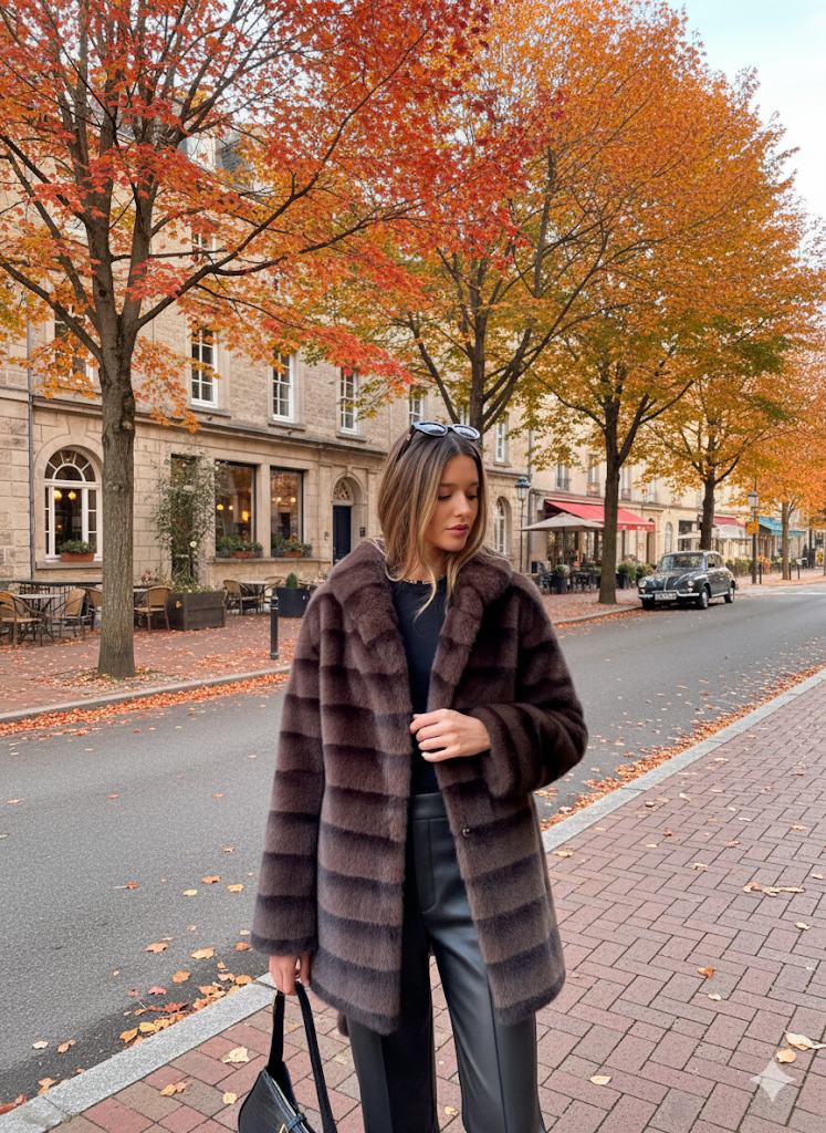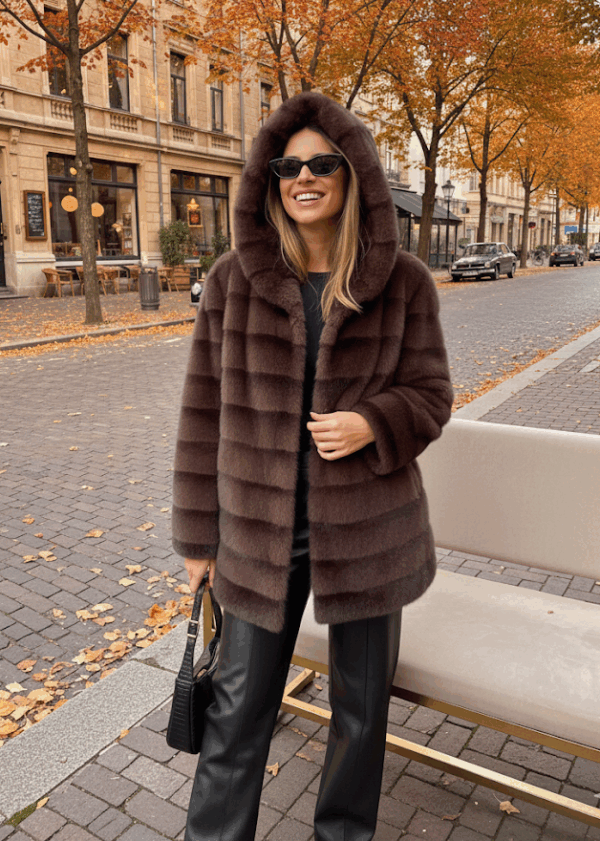 A Rachell csíkos szőrme kabát puha, elegáns és stílusos választás az őszi-téli időszakra. Kapucnival, zsebekkel és öv bújtatóval rendelkezik, méret nélküli kialakítása S–XL méretig ideális.