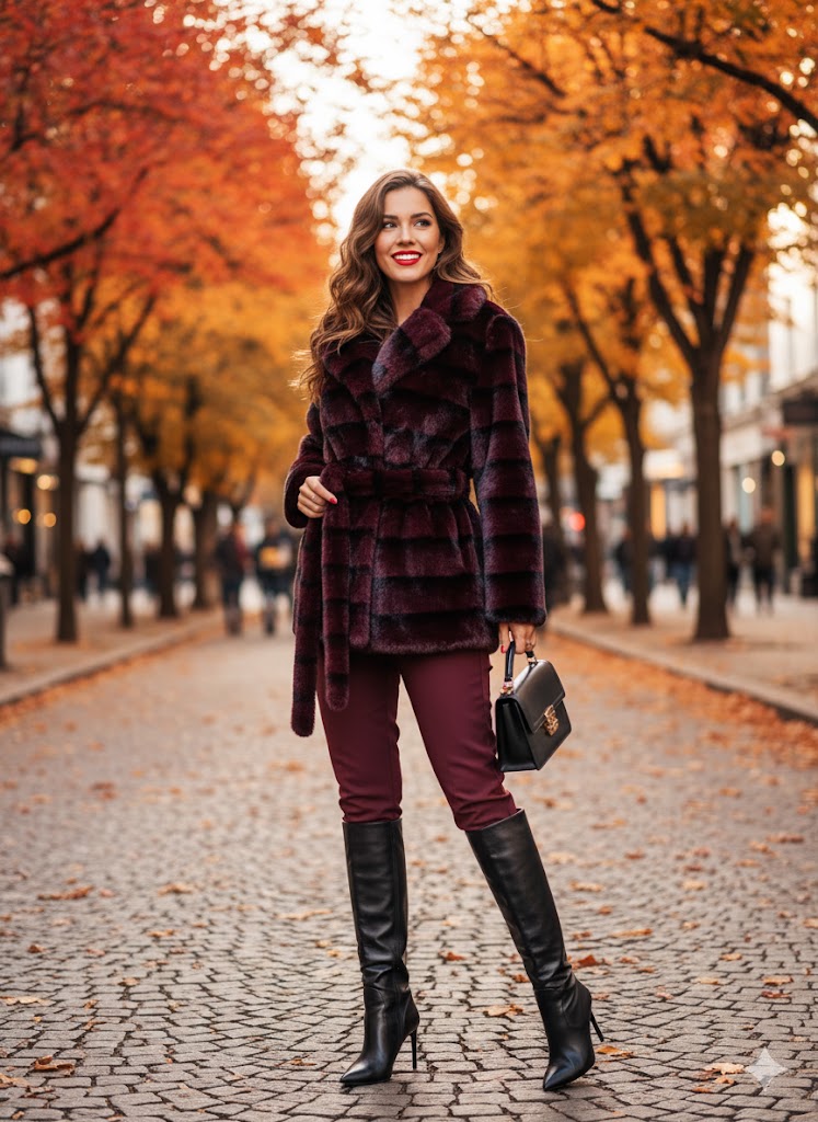 A csíkos szőrme kabát puha, elegáns és stílusos választás az őszi-téli időszakra. Zsebekkel és öv bújtatóval rendelkezik, méret nélküli kialakítása S–XL méretig ideális.