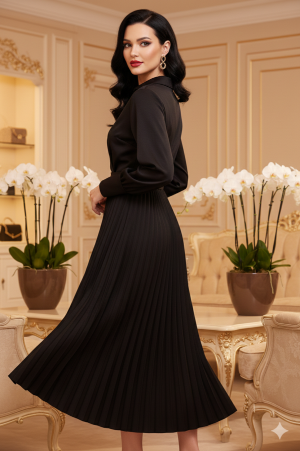 A Rosalie pliszírozott midi ruha stílusos, kifinomult és univerzális darab, amelyben garantáltan magabiztosan és elegánsan fogsz tündökölni.