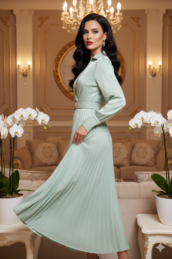Rosalie mentazöld midi pliszírozott ruha