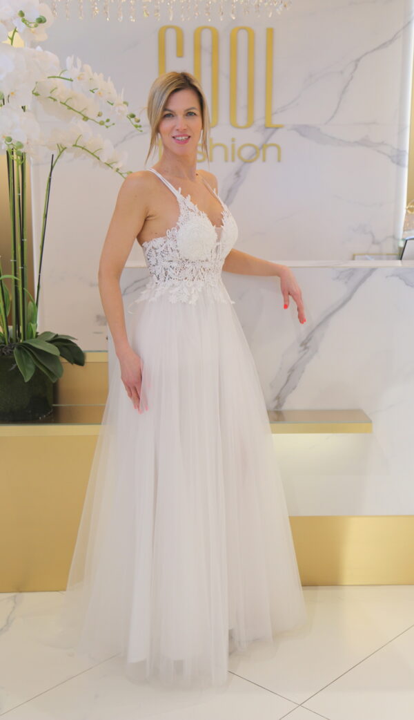 A Rosina maxi ruha tökéletes választás menyasszonyi ruhának, jegyesfotózásra, esküvői vacsorára, bálra vagy bármilyen különleges alkalomra, amikor igazán emlékezetes és nőies megjelenést szeretnél.