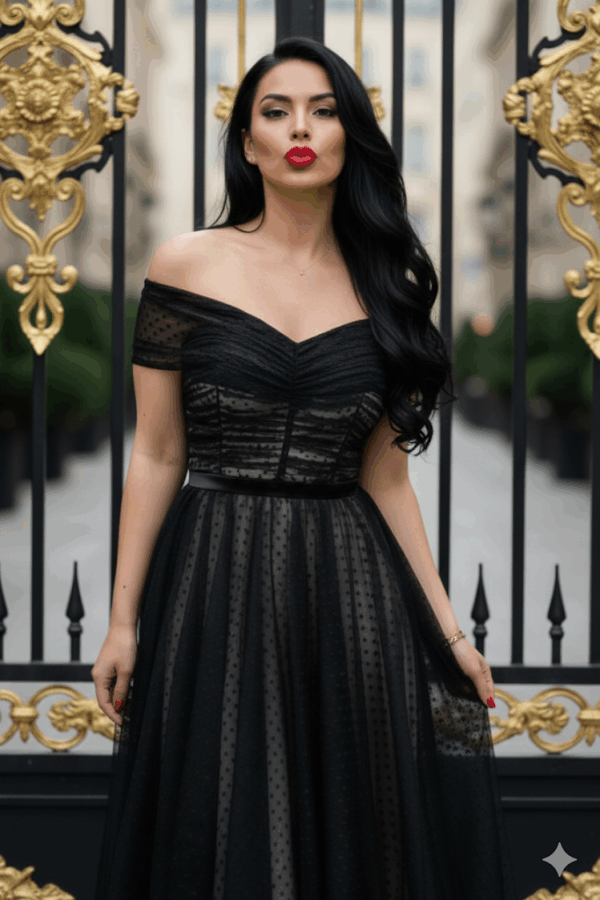 A Sabina fekete-nude midi tüll ruha a tökéletes választás, ha eleganciát és nőiességet szeretnél sugározni, miközben kényelmesen és magabiztosan érzed magad. Ideális egy ünnepi alkalomra, vagy akár egy elegáns esti rendezvényre!
