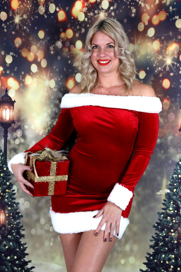 A Pánt nélküli piros mikulás ruha igazi karácsonyi kedvenc, amelyben garantáltan Te leszel az ünnep fénypontja. A gazdag, puha bársony anyag luxus hatást kelt, miközben rugalmas, elasztikus szerkezete kényelmesen idomul a testhez. A pánt nélküli és ejtett vállú kialakítás nőies, finoman csábító megjelenést ad, továbbá gyönyörűen kiemeli a vállakat és a dekoltázst.