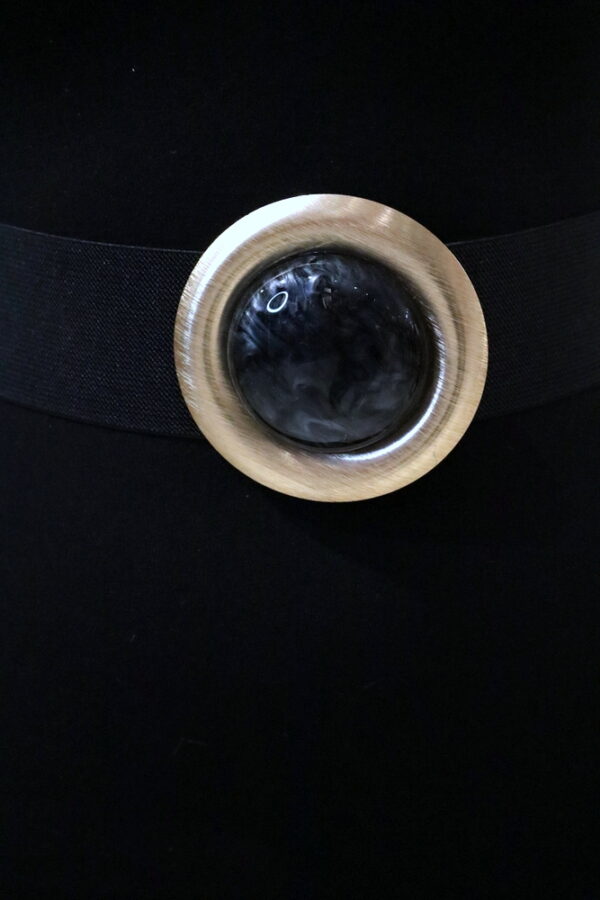 A Saturnus gyöngyház gumis öv a nőies elegancia megtestesítője. A gyöngyházfényű, nagyméretű csat látványos, mégis ízléses dísze az övnek, amely minden outfitet exkluzívvá varázsol. A 6 cm széles gumis rész kiemeli a derekat és karcsúsító hatású, miközben kényelmes viseletet nyújt egész nap.