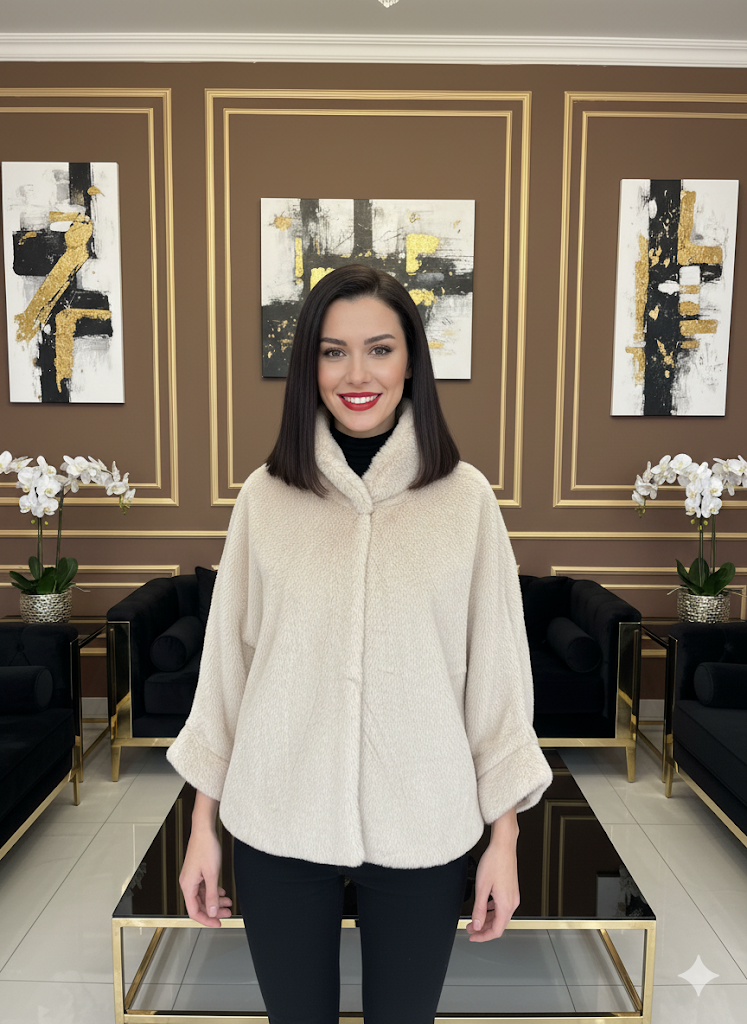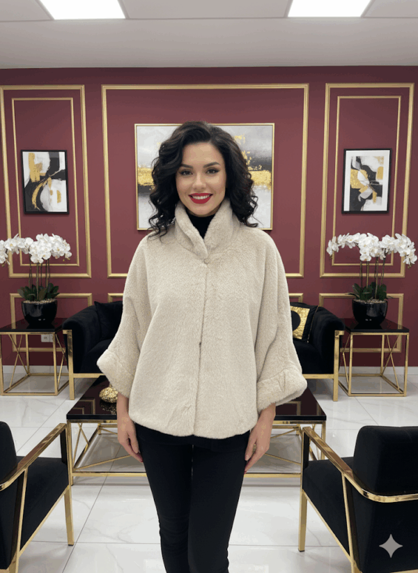A Selva szőrme boleró igazi luxusdarab, amely a nőies eleganciát és a kényelmet ötvözi. A puha, meleg szőrme borítás kellemes viseletet biztosít, miközben látványos megjelenést kölcsönöz bármilyen outfitnek. A magas álló nyak és a hosszú, denevér szabású ujjak modern, kifinomult stílust teremtenek.