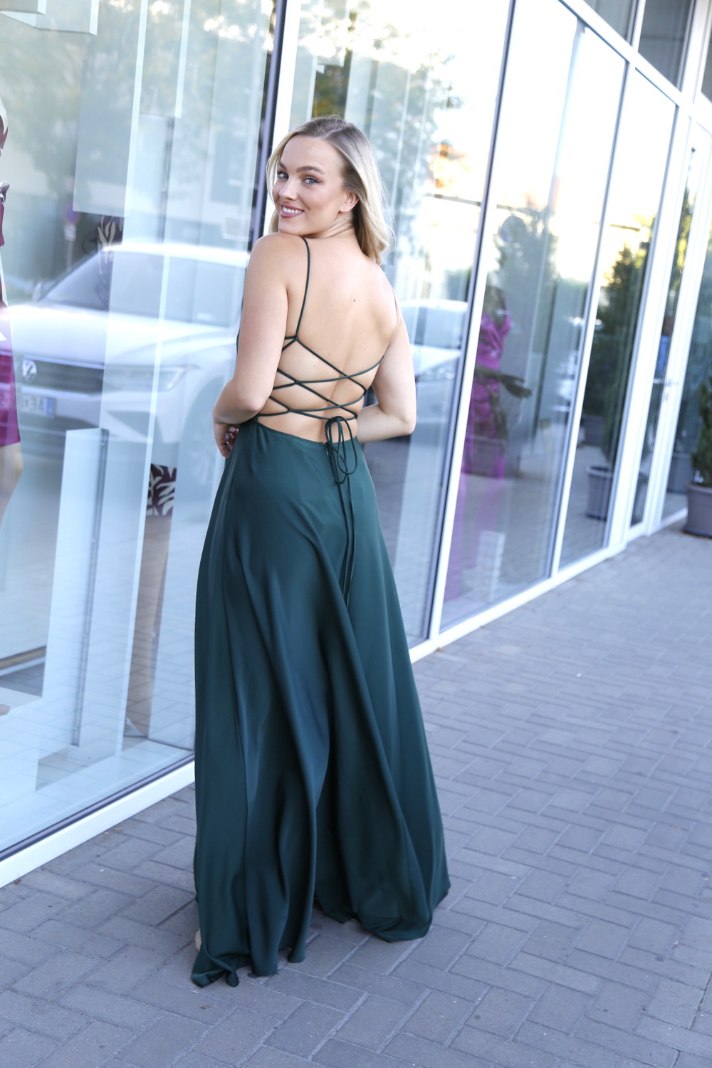 A Sidney szatén maxi ruha tökéletes választás, ha stílusos és különleges megjelenésre vágysz. A fűzős hátmegoldás nemcsak dekoratív, hanem lehetővé teszi az egyedi illeszkedést is, míg a kámzsás nyakrész elegánsan kiemeli a dekoltázst.