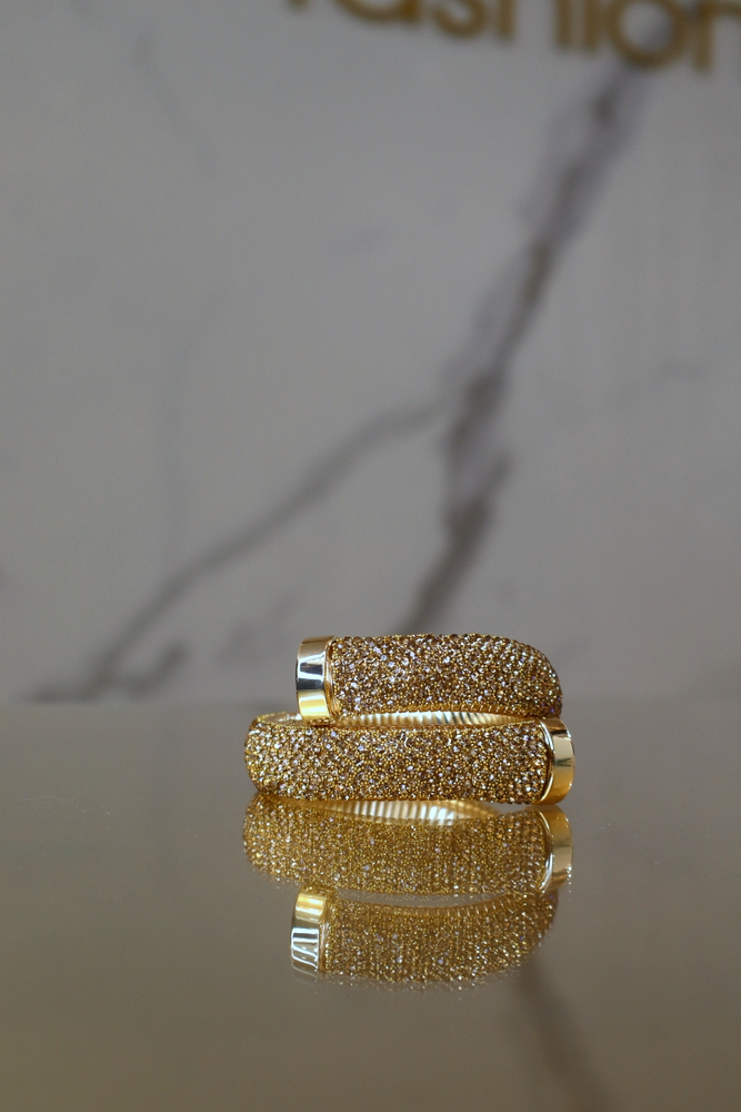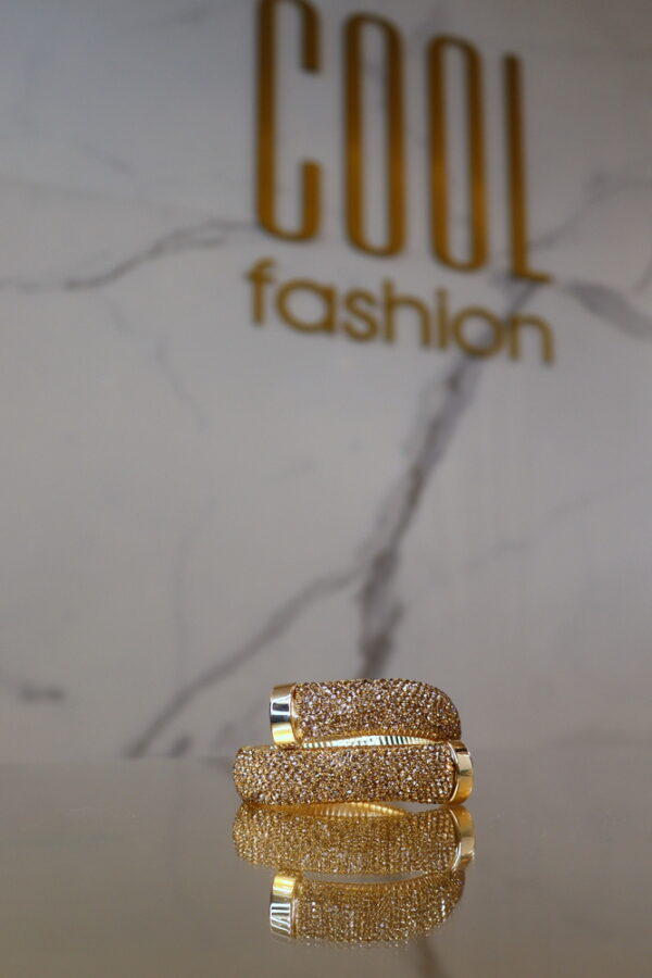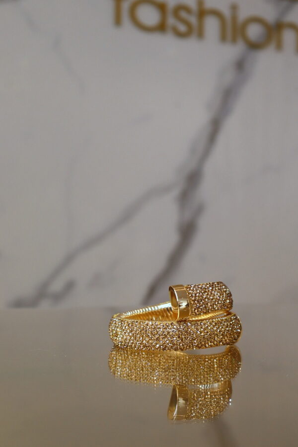 A Solara strasszos fém karkötő elegáns és látványos kiegészítő, amely csillogó részleteivel és merev kialakításával kiemeli a stílusodat.
