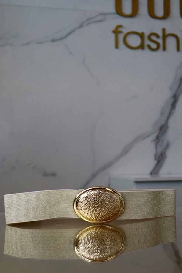 A Strawberry gumis öv elegáns és trendi kiegészítő, amely kiemeli a derékvonalat. A gumis kialakítása kényelmes viseletet biztosít, miközben az arany csat stílusos csillogást ad.