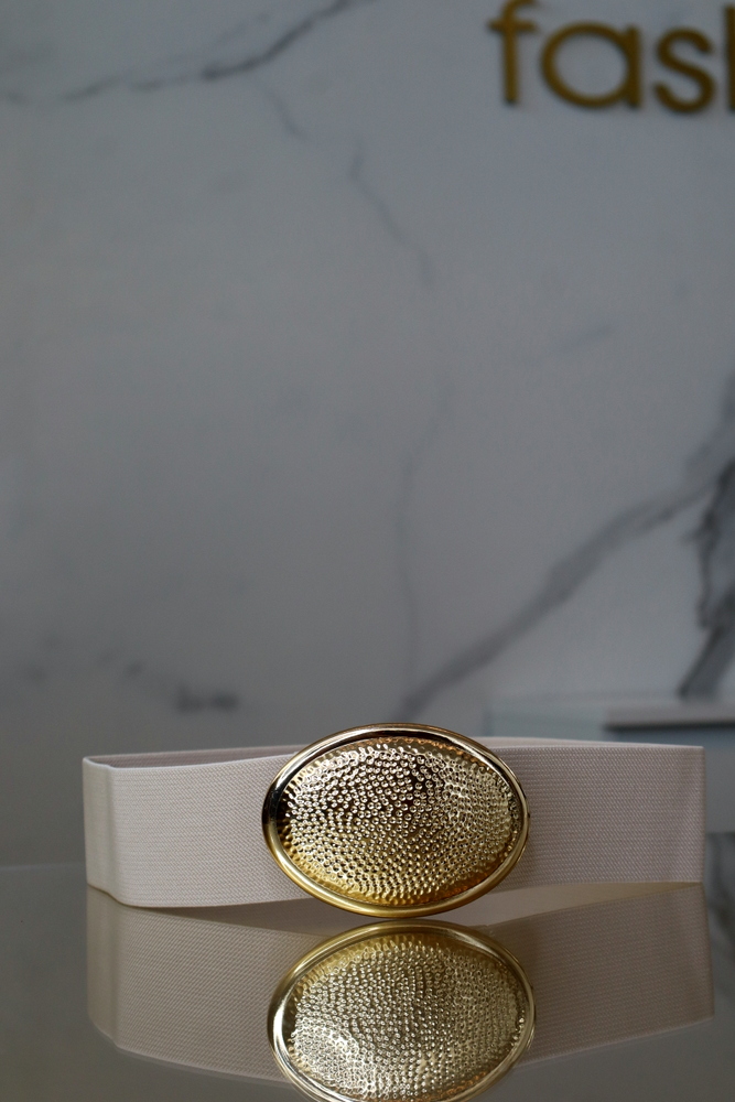 A Strawberry gumis öv elegáns és trendi kiegészítő, amely kiemeli a derékvonalat. A gumis kialakítása kényelmes viseletet biztosít, miközben az arany csat stílusos csillogást ad.