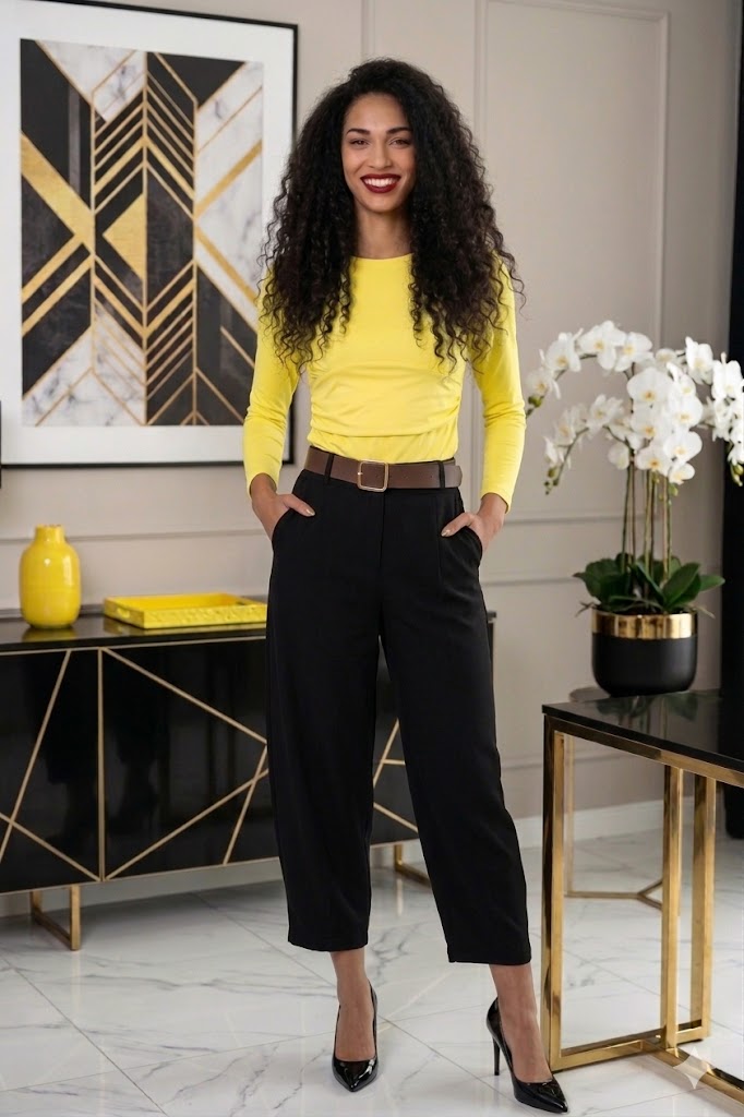 ✅ Nem elasztikus anyag – Strukturáltabb tartás és szebb esés; a gumis derék a kényelmet segíti.