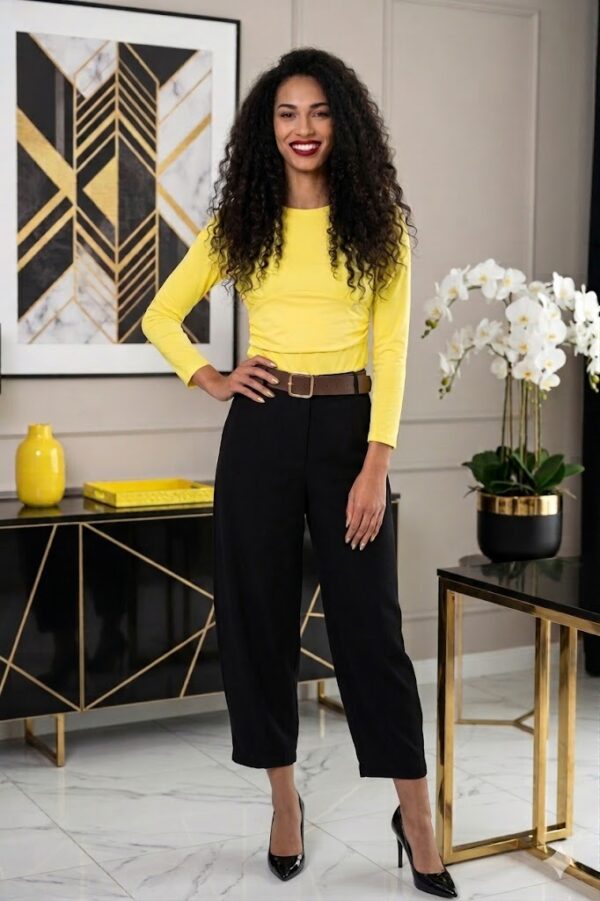 Ha olyan darabot keresel, ami egyszerre kényelmes, nőies és trendi, ez a bőszárú, 3/4-es nadrág garantáltan gyors kedvenc lesz. A könnyed, puha tapintású anyag és a laza fazon szellős komfortot ad, miközben az övvel hangsúlyozhatod a derekad – így pillanatok alatt rendezett, stílusos megjelenést kapsz.