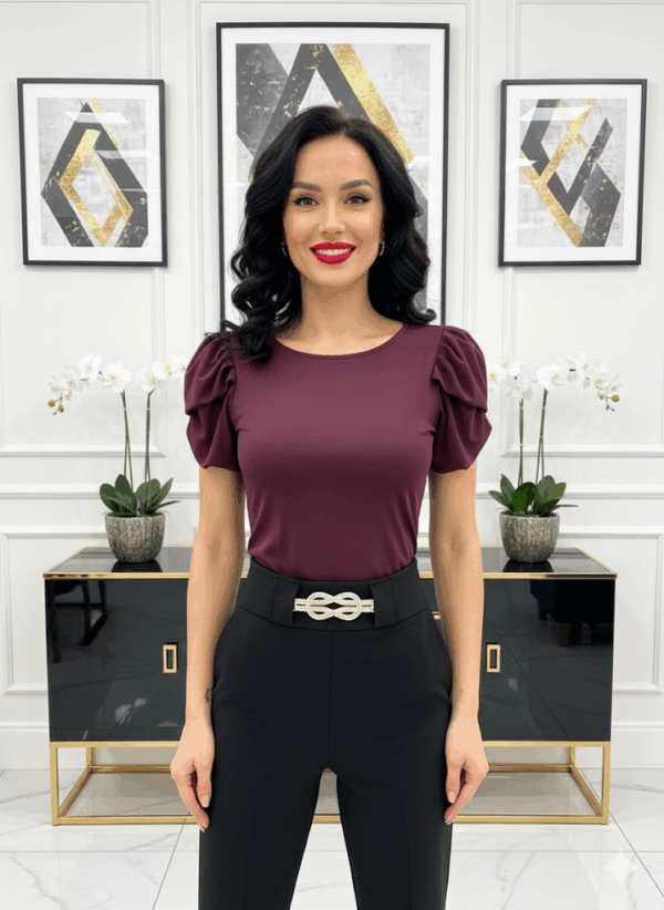 Legyen szó hétköznapi viseletről vagy egy különleges alkalomról, ez a bordó felső könnyedén a kedvenceddé válhat!