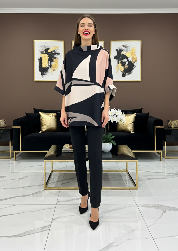 A Vivien kötött rövidujjú garbós felső a női gardrób egyik alapdarabja, amely stílusosan kombinálható szoknyával, nadrággal vagy akár elegáns kosztümökkel is. A garbós kialakítás kifinomult és trendi megjelenést kölcsönöz, miközben a vékony kötött anyag kellemes viseletet biztosít minden évszakban.