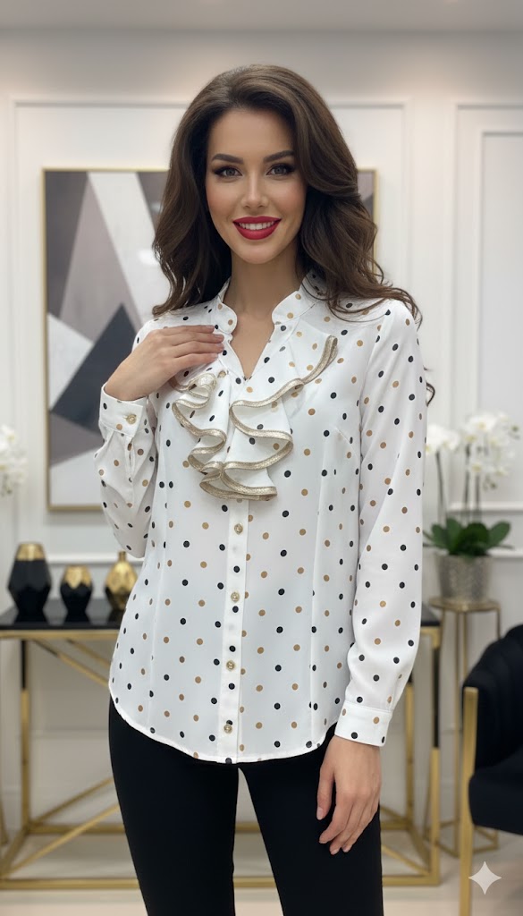 A Yvett zsabós blúz egy igazi klasszikus, amely minden nő gardróbjában megállja a helyét. Az ing fazonú szabás és a végig gombos záródás letisztult, nőies megjelenést biztosít, míg a zsabós díszítés romantikus, különleges karaktert kölcsönöz a blúznak.