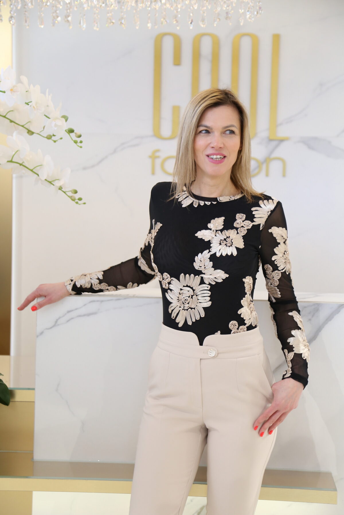A Zaragoza virágos necc felső body elegáns és nőies, elől dupla necc réteggel, hátul és ujjain áttetsző kivitelben. Hosszú ujjú, elasztikus és tökéletes választás alkalmi és hétköznapi eseményekre egyaránt.
