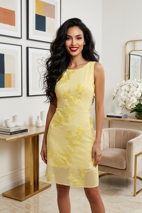 Ha egy olyan ruhát keresel, ami egyszerre finoman romantikus és könnyedén viselhető, ez a necces-virág mintás, ujjatlan darab telitalálat. A kereknyakú kialakítás letisztult eleganciát ad, az A-vonalú szabás pedig szépen követi a vonalaidat anélkül, hogy feszengene. Viseld irodába egy blézerrel, hétköznapokra egy farmerdzsekivel, vagy egy csinos vacsorára magassarkúval – mindig nőies és magabiztos lesz az összhatás.