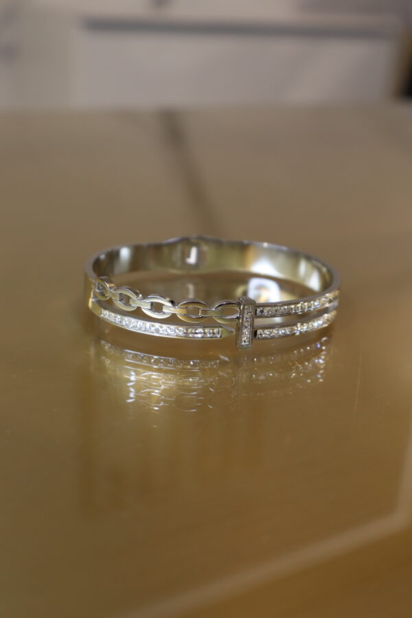 Ez a karkötő egy igazán finom és nőies kiegészítő, amely tökéletesen passzol elegánsabb és hétköznapi szettekhez is. Ezüst és arany színben is elérhető, így bármilyen stílushoz remekül illeszkedik. Diszkrét csillogást kölcsönöz, miközben a fém anyag és rugós kialakítás könnyű felhelyezést biztosít.