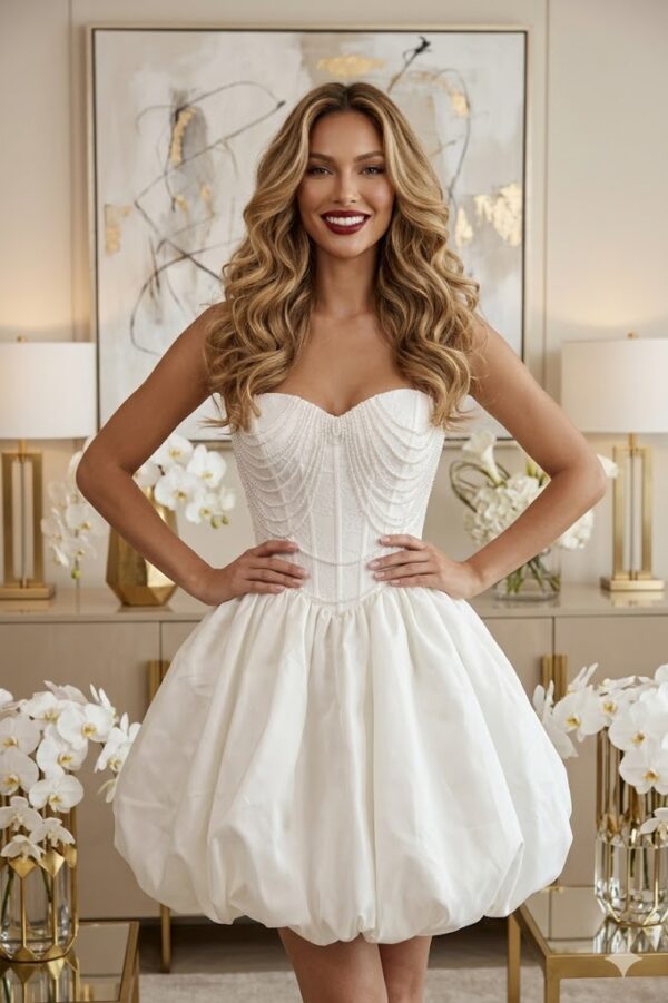✅ Pánt nélküli kialakítás – Gyönyörűen kiemeli a vállakat és a dekoltázst, elegáns, modern összhatást ad.