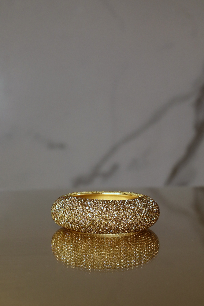 A Zinnia strasszos fém karkötő elegáns és látványos kiegészítő, amely csillogó részleteivel és merev kialakításával kiemeli a stílusodat.