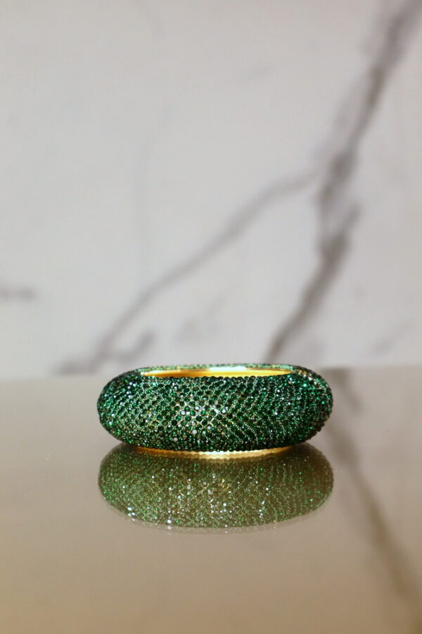 A Zinnia strasszos fém karkötő elegáns és látványos kiegészítő, amely csillogó részleteivel és merev kialakításával kiemeli a stílusodat.
