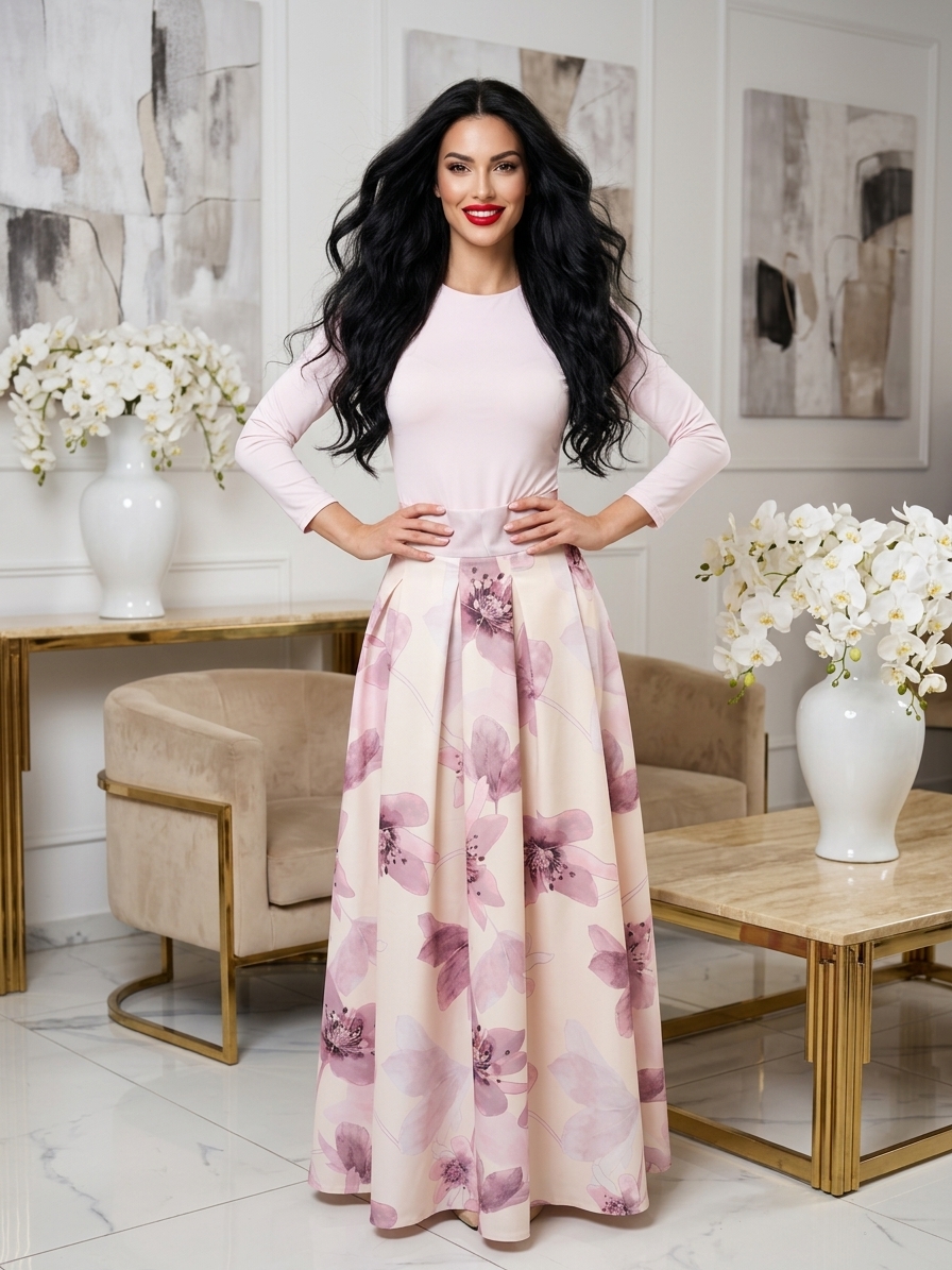 A zsebes maxi szoknya ideális választás a mindennapi eleganciához és a különleges alkalmakhoz is. A rakott fazon és a magas derekú szabás kiemeli az alakot, miközben kényelmes viseletet biztosít. Az elülső zsebek praktikusak, és stílusos kiegészítők az egyébként letisztult, klasszikus megjelenéshez.
