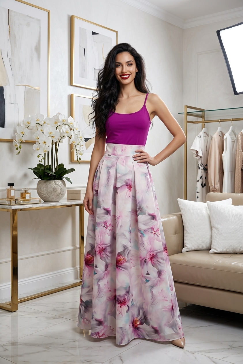 A zsebes maxi szoknya ideális választás a mindennapi eleganciához és a különleges alkalmakhoz is. A rakott fazon és a magas derekú szabás kiemeli az alakot, miközben kényelmes viseletet biztosít. Az elülső zsebek praktikusak, és stílusos kiegészítők az egyébként letisztult, klasszikus megjelenéshez.